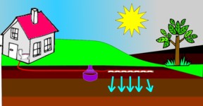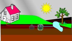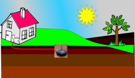 | Nedsivningsanlæg! Et nedsivningsanlæg er det mest anvendte. Anlægget består af en bundfældningstank, hvor den mekaniske rensning foregår. Derefter ledes spildevandet via en pumpe ud til et nedsivningsområde, som er opbygget på 20 cm 16/32 nøddesten, hvor vandet fordeles og renses af jordens mikroorganismer. Afstandskrav: Vandboring 300m. Drænledning, grøft og Sø 20 m. Skel 5m. |